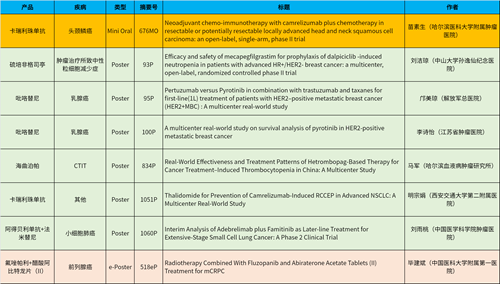在头颈肿瘤、乳腺癌、肺癌、前列腺癌等多个疾病领域,卡瑞利珠单抗、阿得贝利单抗、吡咯替尼、氟唑帕利、法米替尼、醋酸阿比特龙片(II)等抗肿瘤新药相关研究一共入选了1项简短口头报告、4项壁报展示和1项电子壁报,彰显了九游会ag医药强劲的研发实力。